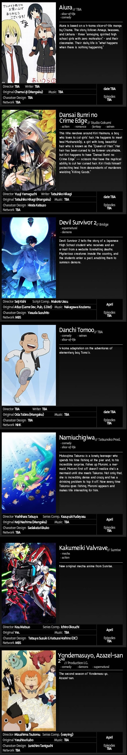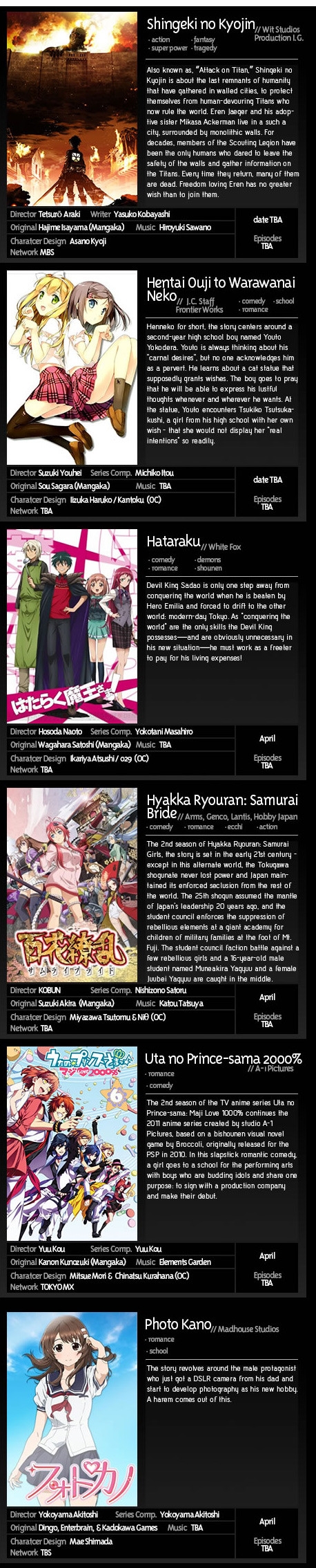 While we’re just now getting a taste of what winter has to offer, the spring 2013 anime season is looking quite tantalizing. And though the outline of what’s to come is still a bit rough at this point, it’s intriguing none the less.