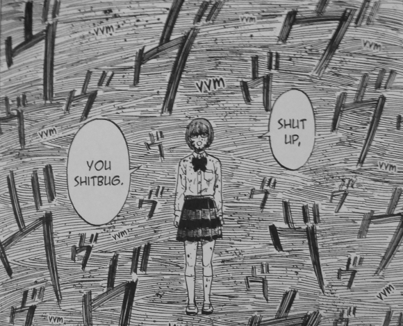 While many found the style of the anime adaptation to be unappealing (I’m not one of them), I think one would be hard pressed to find fault with Oshimi’s art style in this (or any) volume of the manga. I especially love the way he draws eyes, which he imbues with a level of characterization rare in manga. I think he could draw a chapter that’s completely dark except for the eyes and I’d still be able to tell the characters apart.