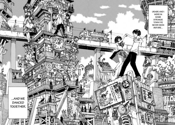 For its 13 episodes, the anime completely outclasses the manga in terms of visuals. Backgrounds and dreamscapes are not only used more often but with greater impact on the story regarding foreshadowing and mood/tone. I still remember more of the anime’s presence than that of the manga despite the latter’s length and unfortunate repetition. The manga had not finished when the anime was airing, so a true-to-the-book ending was not in the cards. How the anime ended its run, by swapping content and choosing specific chapters to relay the building relationship between Tsubaki and Urabe as well as foreshadowing its conclusion, became evident as mastery upon reading the manga. The composition of the manga’s chapters seems (by comparison) corrupted by a bad sense of both pacing and character evolution; chapters seem spurred on by random ideas instead of an architected flow. (Character design, however, is pretty consistent between the two mediums.) Thankfully, some of what the anime omitted for time’s sake, and much of what’s in the volumes that followed the anime’s air dates, is worthwhile reading material.