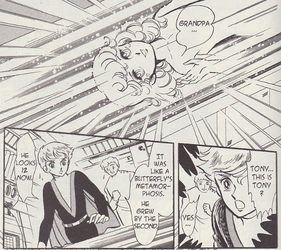 One of those burdens is Tony, who is the product of the first natural birth among the Mu, and an exceptionally powerful telepath. Brought up with utmost love and care by his mother Carina, he is overcome with grief when she dies. The resulting shock causes him to overreact and accelerate his physical growth in order to be of greater use to Jomy, the young leader who encouraged his birth and whom he now regards as his family. This change makes him as an abrasive, irritable person who is still very much a child emotionally, traits exaggerated by being the cornerstone of the Mu military due to his immense psychic power. This combination of personality and ability causes Tony and the few others like him in the Mu population to be treated as outcasts. They eventually leave the Mu to begin a dreamlike existence among the stars, having grown up too fast without the grounding to cope with the harsh reality they live in.